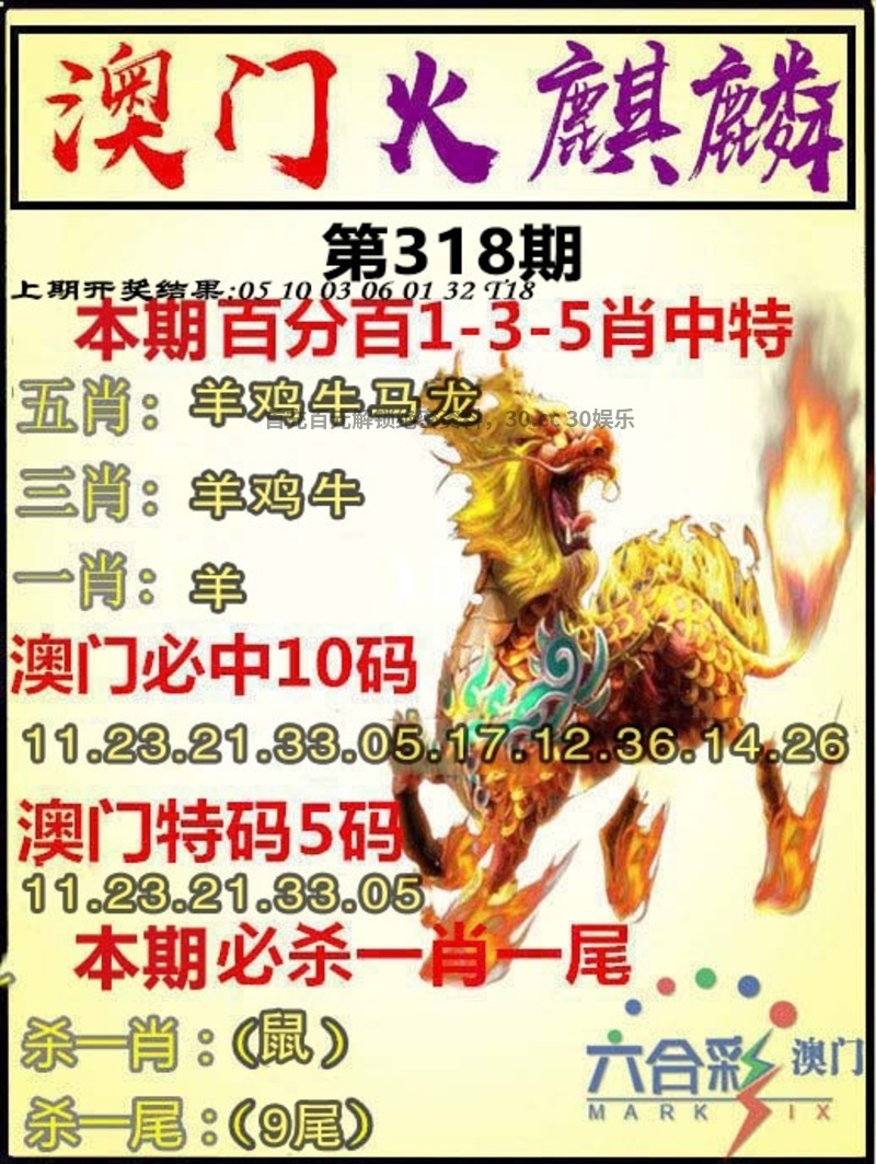 | 318期:绝杀一行╠火火火╣开:鼠06准 |